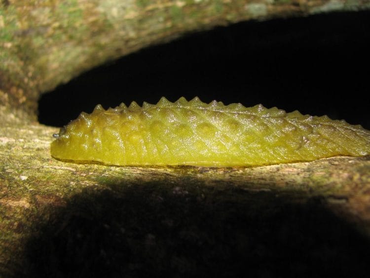 Penampilan unik siput tanpa cangkang ini tidak hanya mengingatkan kamu pada kulit durian yang berduri, tapi juga pada acar mentimun. Warna kulitnya yang hijau dan kadang berpadu dengan warna kuning serta permukaan yang kasar sangat mirip dengan penampilan acar mentimun. Oleh karena itu, makhluk kecil ini disebut pickle slug atau siput acar. Selain itu, siput ini juga memiliki nama panggilan lain yang tidak kalah unik, seperti putoko ropiropi, gherkin slug, dan siput urat daun.