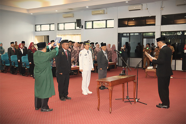 Pemerintah Kabupaten Ciamis menggelar pelantikan dan pengambilan sumpah jabatan bagi pejabat administrator di lingkungan Pemkab Ciamis. Kegiatan ini berlangsung di Aula Sekretariat Daerah Kabupaten Ciamis pada Senin (3/11/2025) dan dihadiri oleh para kepala perangkat daerah, camat, pejabat administrator yang dilantik, Ketua TP PKK, Ketua Dharma Wanita Persatuan Kabupaten Ciamis, serta para tamu undangan lainnya.