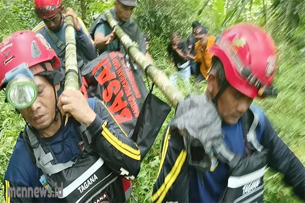 Medan yang curam, membuat Tim SAR gabungan mengalami kesulitan saat mengevakuasi jasad korban ke tempat yang aman.