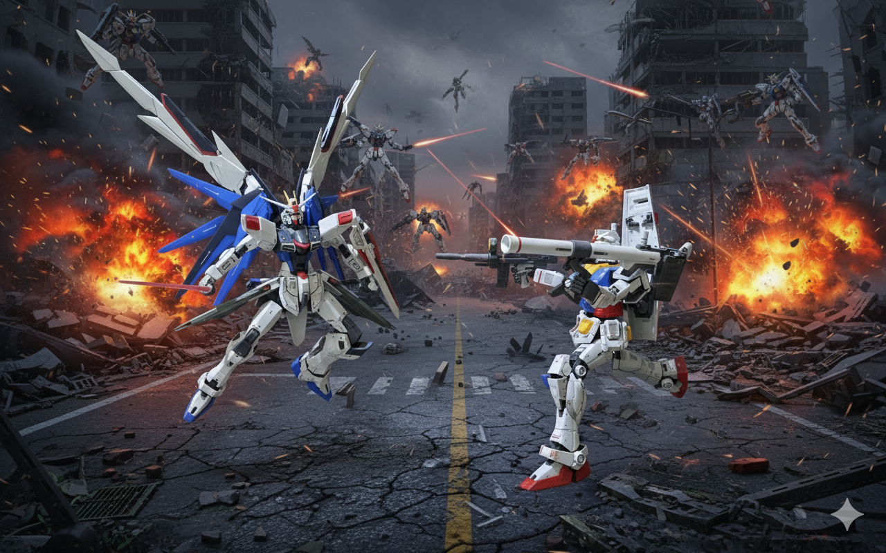 Misalnya fitur Text-to-Image dan pengeditan kontekstual. Saya hanya perlu memasukkan instruksi sederhana, contohnya, mengubah foto Gundam yang biasa saja menjadi lebih dramatis dengan prompt “buat efek dramatis seperti perang di dunia Gundam”, dan AI langsung menjalankannya.