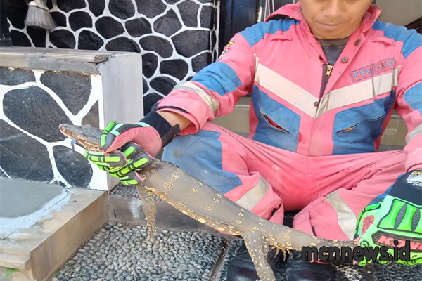 Dengan kehati-hatian dan kesigapan tinggi, tim Damkar akhirnya berhasil menangkap biawak tersebut dalam kondisi hidup dan mengamankannya dengan aman.