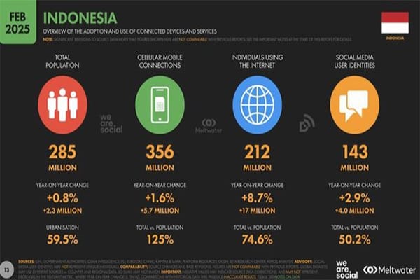 Jakarta, MCNNews.id – Jumlah pengguna internet di Indonesia pada tahun 2025 resmi menembus angka 229,4 juta jiwa. Data terbaru ini menegaskan bahwa peran internet dalam kehidupan masyarakat Indonesia semakin tidak terpisahkan.