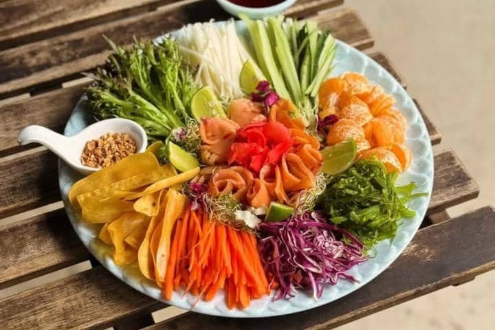 Ng-Sang Bangka menyajikan potongan ikan mentah yang dipadukan dengan saus kacang dan berbagai sayuran segar. Meski berbeda dari versi Malaysia dan Singapura, esensinya tetap sama, yaitu menghadirkan simbol keberuntungan dan kebersamaan.