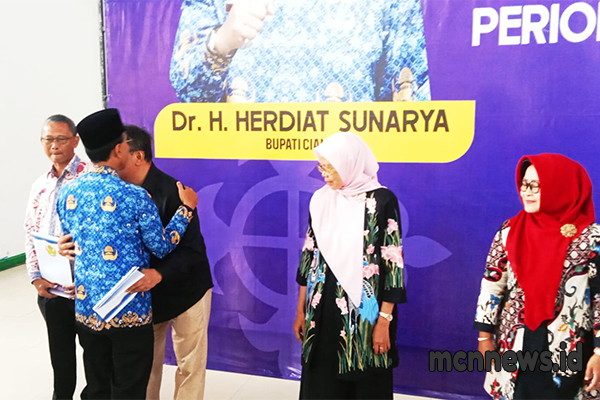 CIAMIS, MCNNEWS.ID – Bupati Kabupaten Ciamis Herdiat menyampaikan apresiasi dan penghargaan kepada para Aparatur Sipil Negara (ASN) yang memasuki masa purna bakti sebagai bentuk penghormatan atas dedikasi dan loyalitas mereka selama bertugas melayani masyarakat. Rabu (03/12/2025)