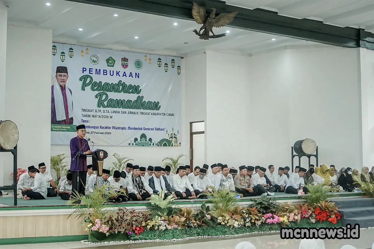 Bupati Ciamis Hediat Sunarya secara resmi membuka kegiatan Pesantren Ramadhan Tingkat Kabupaten Ciamis 1447 Hijriah/2026 Masehi yang digelar di Gedung KH Irfan Hielmy, Jumat (27/02/2026).