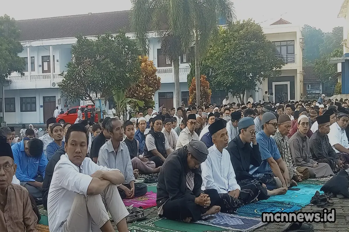 Warga Muhammadiyah melaksanakan sholat Idul Fitri di halaman STIKes Muhammadiyah Ciamis, Jum’at, 20 Maret 2026.